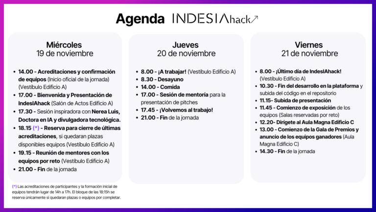 IndesIAhack tendrá lugar los días 19, 20 y 21 de noviembre de 2025.