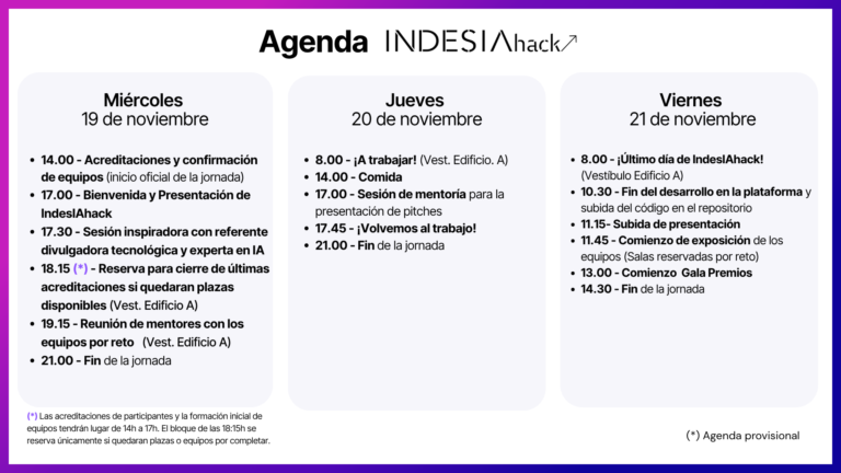 IndesIAhack tendrá lugar los días 19, 20 y 21 de noviembre de 2025.